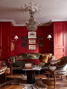 Crvena boja za zidove ni u jednoj prostoriji ne može da se ne uklopi. Prosto miriše na jabuku i cimet. Glavni predstavnik vatre, ljubavi i strasti u punom sjaju može da se pokaže u omiljenoj prostoriji. Kako crvena, tako i druge jarke boje predstavljaju temperament i jačinu. Slična crvenoj, tu je i narandžasta koja nosi simboliku zabave i kreativnosti.