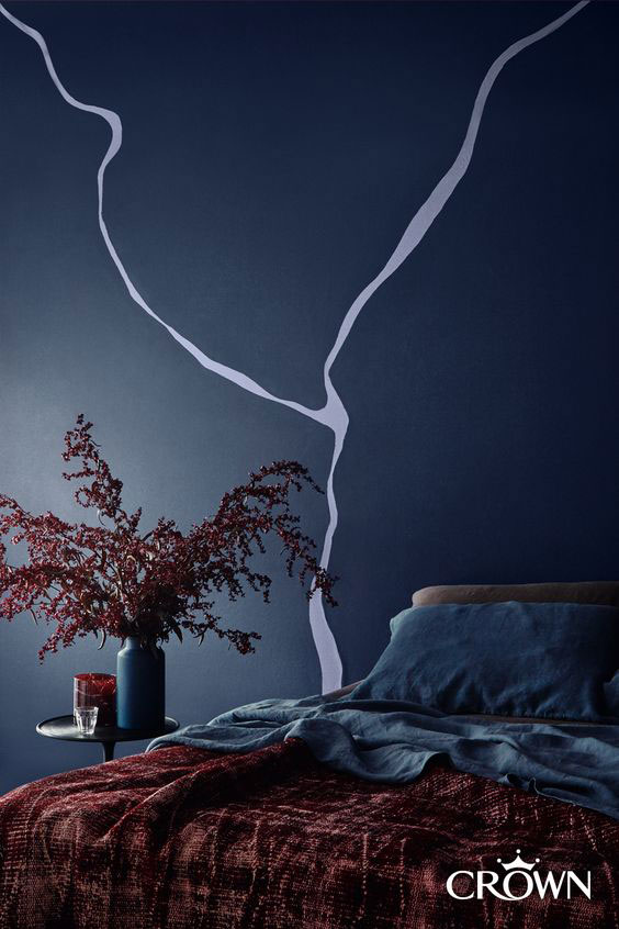 Izgled Midnight Garden-a može se kreirati na jednom ziduili u celoj prostoriji koristeći raznovrsnu paletu boja, uključujući sive, plave, ljubičaste i roze nijanse. Ne zaboravite da dodate završne detalje burgundskim i tamno plavim asesoarima kao što su vaze, prostirke, ramovi za slike i sveće.