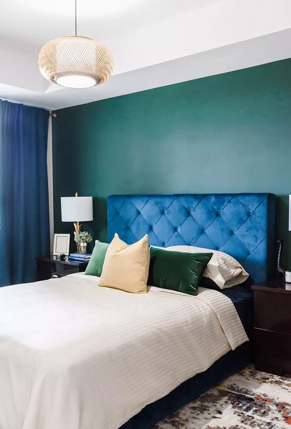 Za ovu spavaću sobu dizajnerka Iman Stewart znala je da mora da pristaje uz boju koja će stvoriti bogat efekat – a tamno zelena čini samo trik ka ostvarenju tog cilja. „Želim da uklopim ljubav prema bojama odabirom živih žižnih zidova koji dopunjuju kulturu mojih klijenata“, rekla je. “Tamno zelena je jedno od mojih omiljenih zelenih nijansi i volim je u visokom ili niskom sjaju. To joj daje prednost jer se bogat efekat može dobiti bilo da ukrašavate enterijer ili eksterijer.”