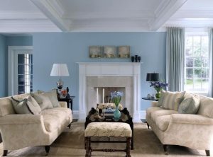 Svetlo plava nijansa u vašem dnevnom boravku se najlepše uklapa ako imate svetao nameštaj. Prostor uvek možete da popunite biljkama ili umetničkim slikama po zidovima ili ipak vašim porodičnim fotografijama kako biste stvorili harmoniju prijantog doma i vesele atmosfere.