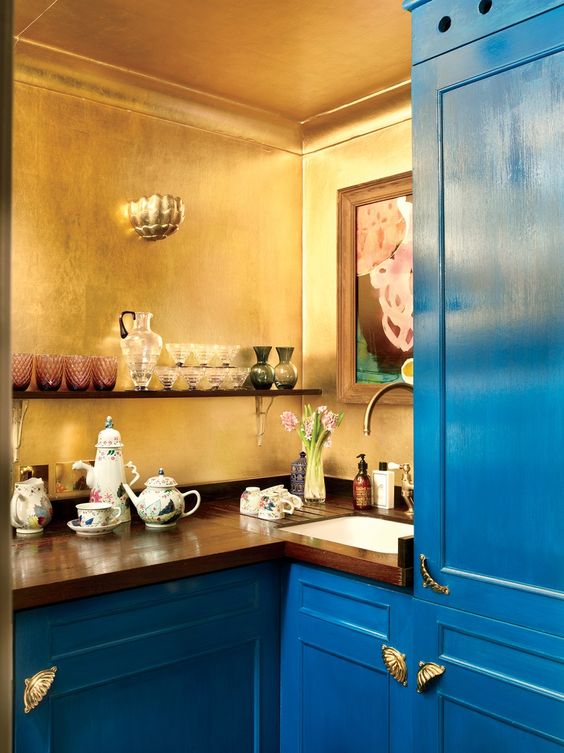 Zlatna boja se najbolje kombinuje sa neutralnim tonovima kao što su bela, siva ili smeđa. Ove neutralne nijanse mogu pomoći da se zlatna boja istakne i stvori kontrast i da se istovremeno ne preoptereti prostor sa previše zlatne boje. Kombinovanjem zlatne boje sa prirodnim drvenim tonovima ili s drugim toplim bojama poput crvene, može se postići efektan i raskošan izgled. Zlatna boja može se koristiti u različitim sobama, ali najbolje se uklapa u prostorije u kojima boravimo i družimo se sa drugima, kao što su dnevne sobe, trpezarije i spavaće sobe. U dnevnim sobama i trpezarijama, zlatna boja može se koristiti za naglašavanje akcentnog zida ili detalja poput plafona, dok se u spavaćim sobama može koristiti za stvaranje osećaja topline i luksuza.